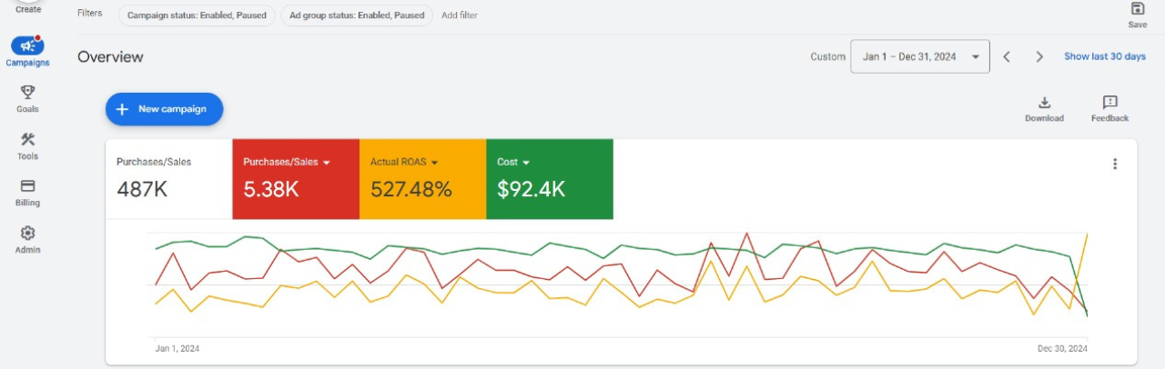 Implemented a full-funnel Google Ads strategy focusing on high-intent keywords, shopping campaigns, and continuous optimization, improved targeting, optimized bidding strategies, and scaled winning campaigns to maximize return on ad spend.